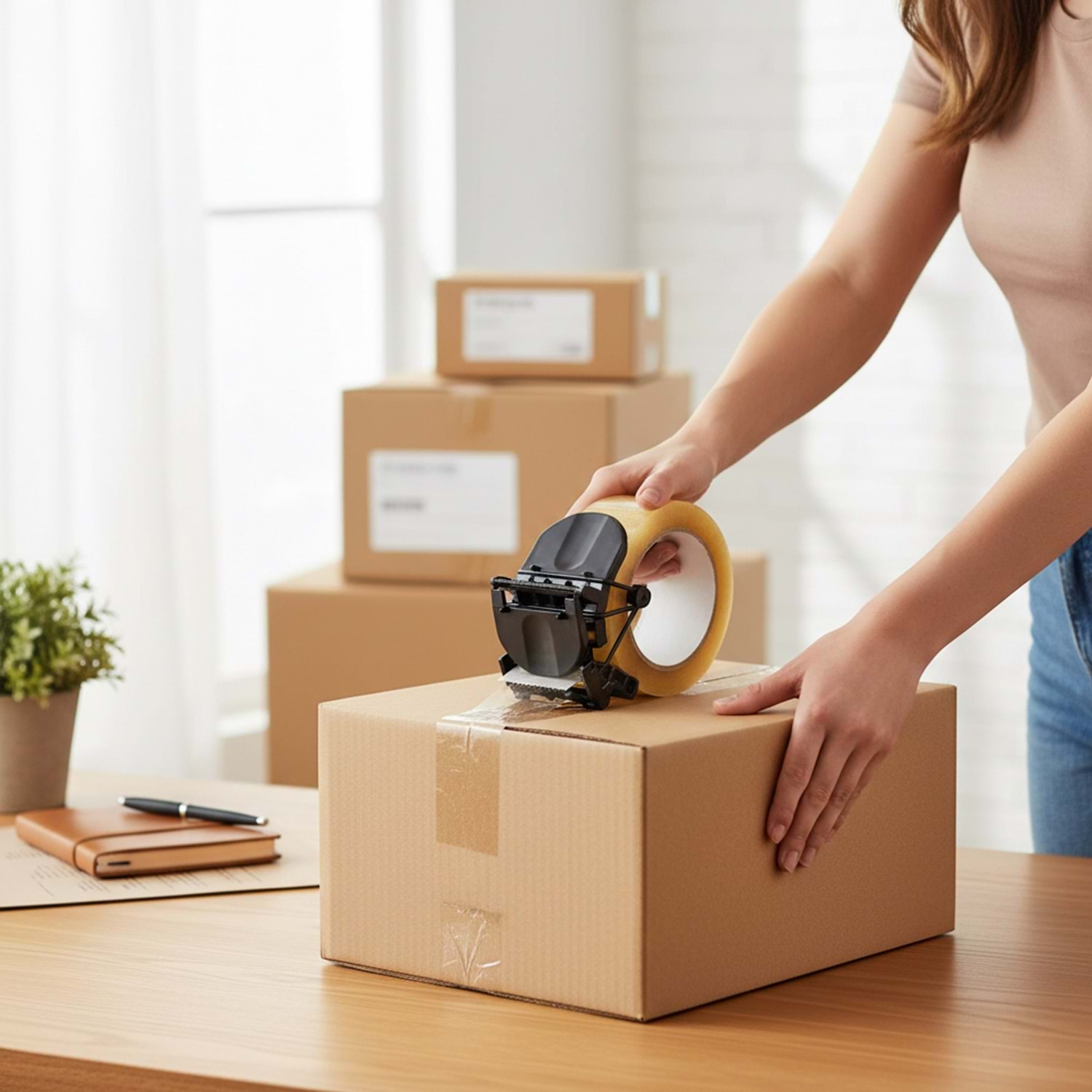 Abs plastikten üretilen çelik bıçaklı koli bandı kesme aparatı.
